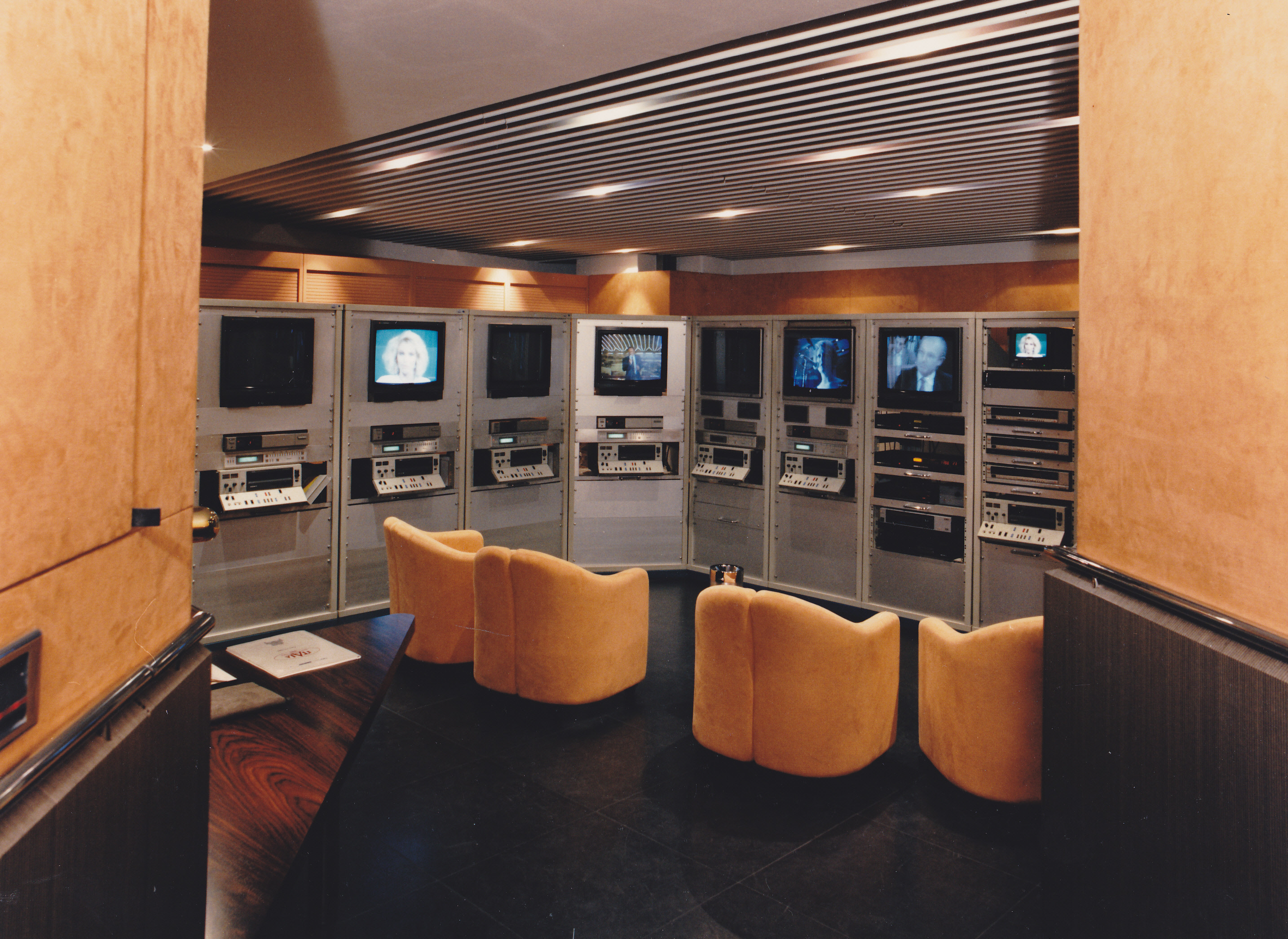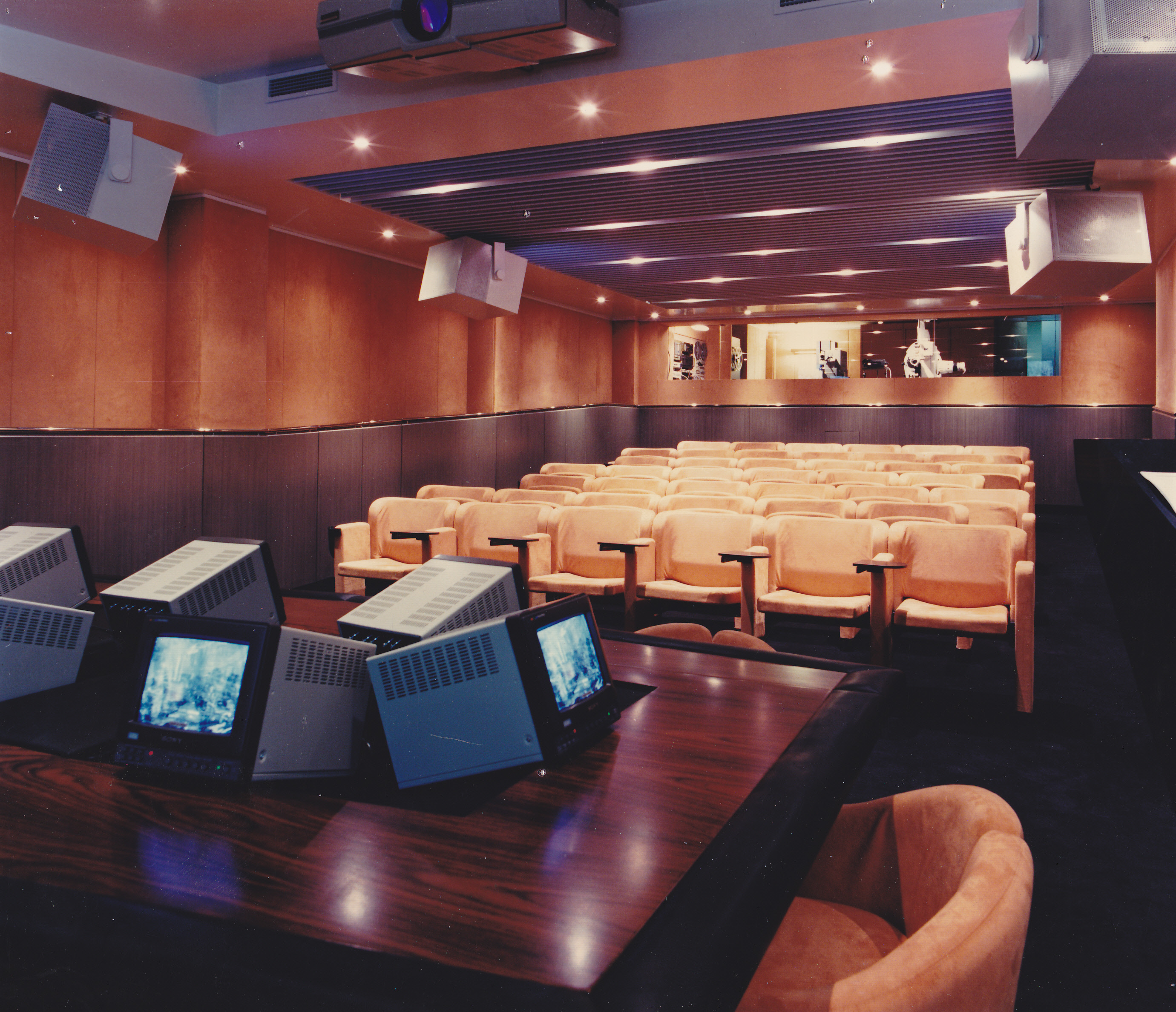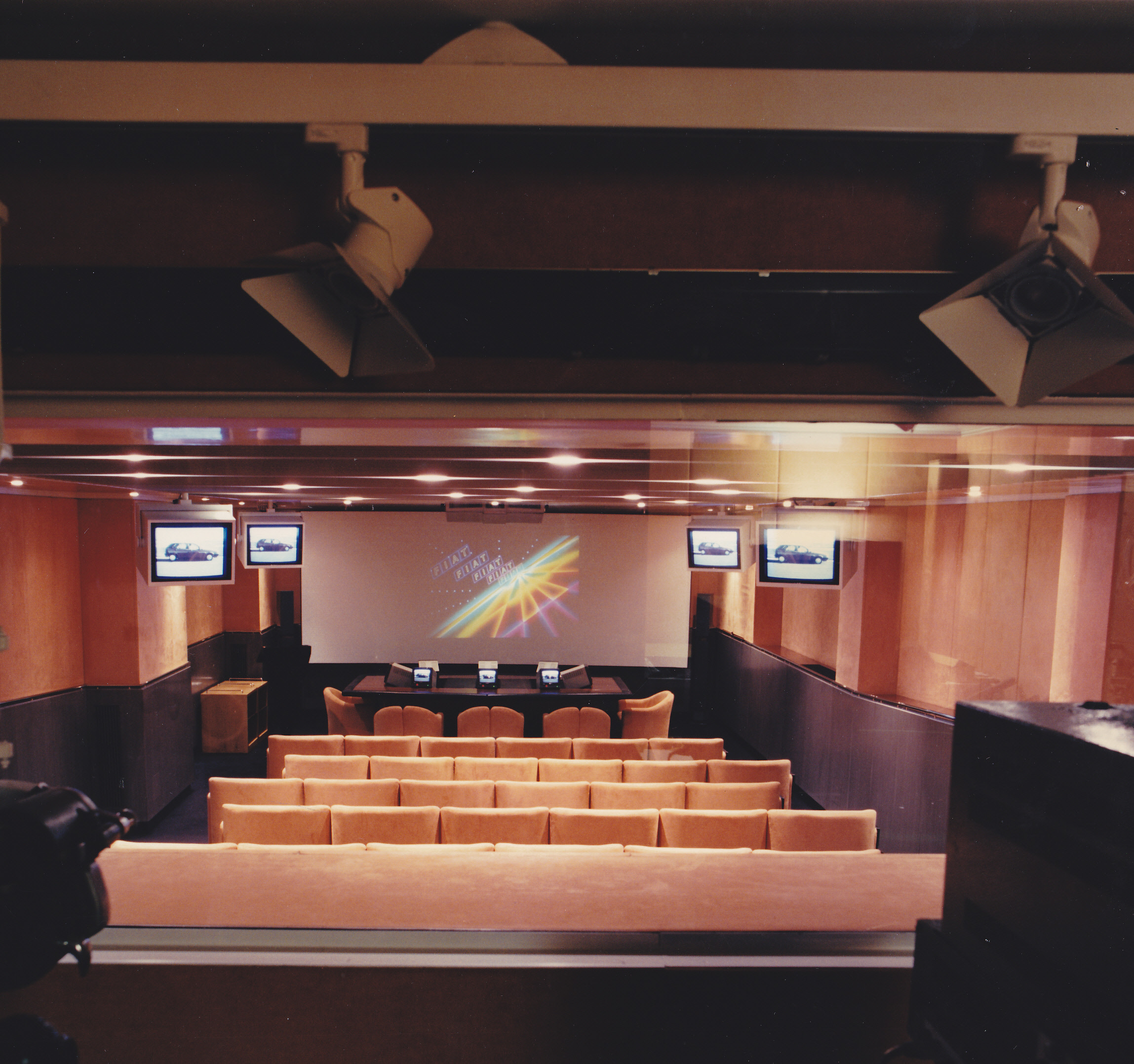1988-1989, ristrutturazione, arredo e dotazioni impiantistiche generali, trasmissione dati e audiovisive e elettroniche, per sala coferenze, per sala traduzione simultanea e per sala registrazionie e visione, denominata “Cine Fiat”, corso Marconi, Torino, elaborazione studi di progetto, preliminare, arredi, apparecchiatura, impianti, progetto esecutivo, pratiche USL/ASL, VV.F., ecc., gestione e coordinamento realizzazione dei lavori.